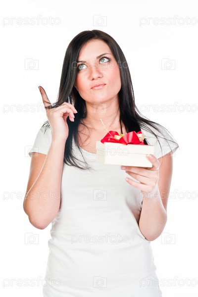 Молодая и красивая женщина с подарком