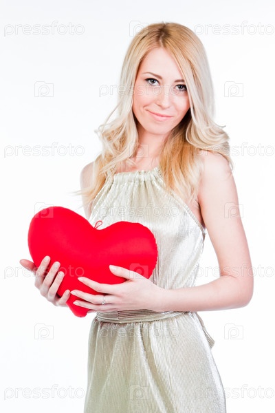 Молодая и красивая женщина с плюшевым сердцем