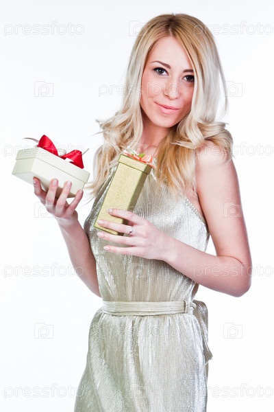 Молодая и красивая женщина с подарком