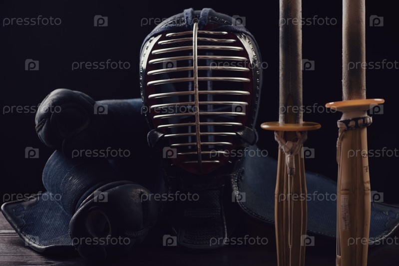 Амуниция для занятий кэндо, черный фон