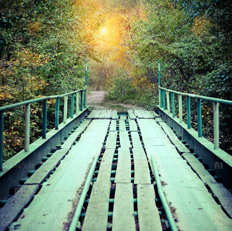 Старый мост в туманном осеннем парке