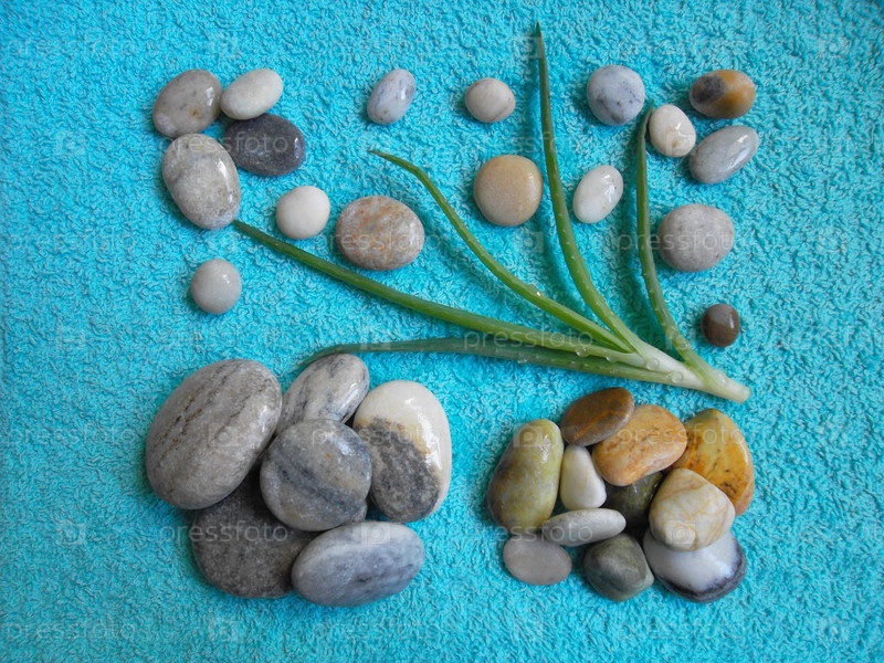 Камни и веточка алоэ
