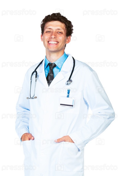 Портрет улыбающегося врача на белом фоне