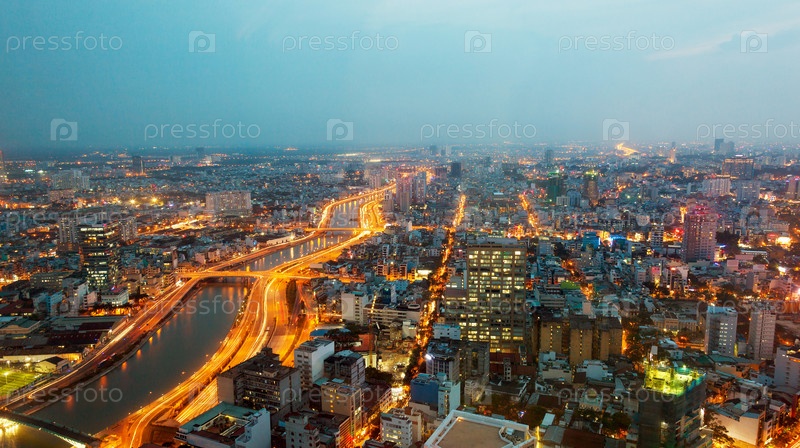 Панорама города Сайгон ночью