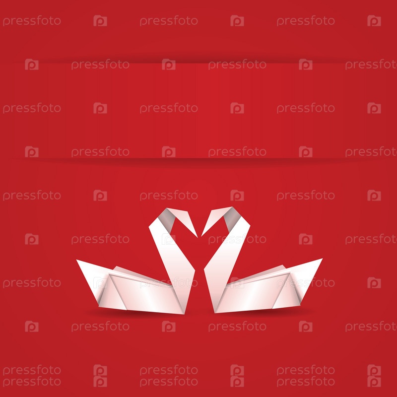Оригами лебедя на красном фоне