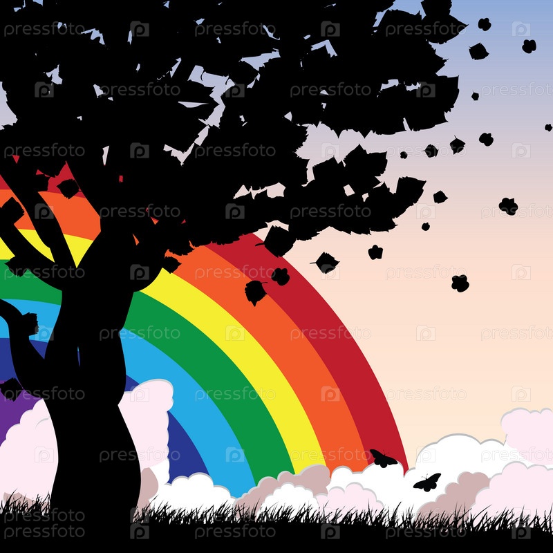 Силуэт дерева и радуга