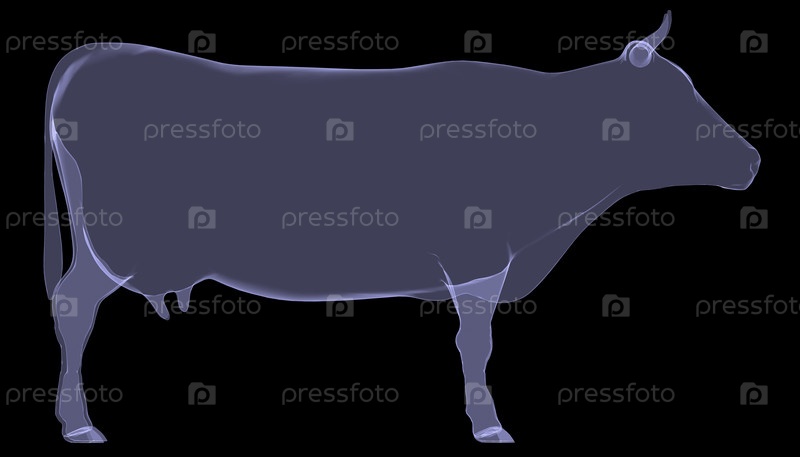 Корова. Рентгеновская визуализация на черном фоне