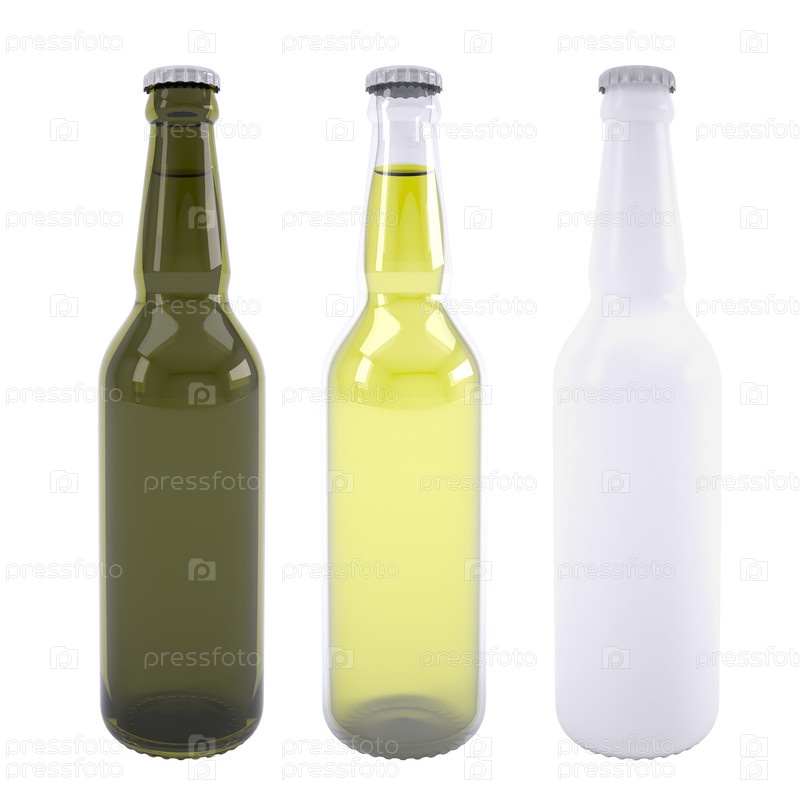 Три бутылки пива. Изолированная визуализация на белом фоне
