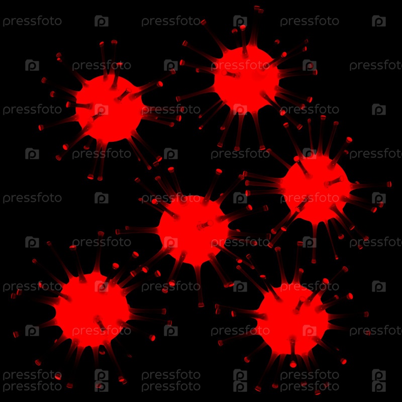 3D светящиеся микроорганизмы.Изолированная визуализация на черном фоне