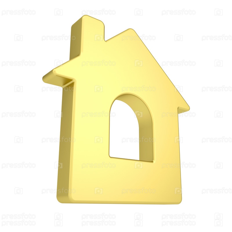 Золотой значок дома. Изолированная визуализация на белом фоне