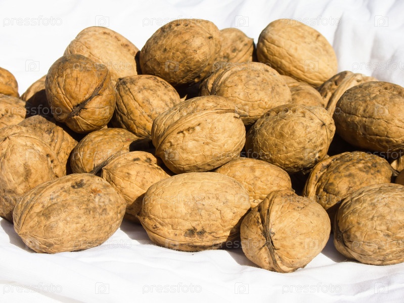 Грецкие орехи на белой ткани