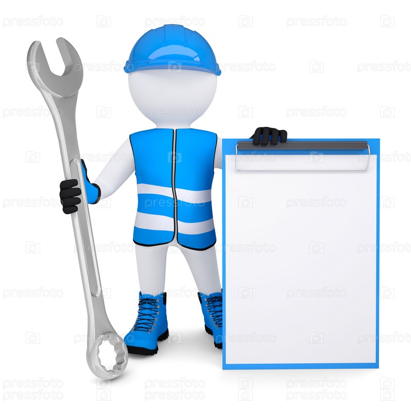 3D-человек в спецодежде с гаечным ключом