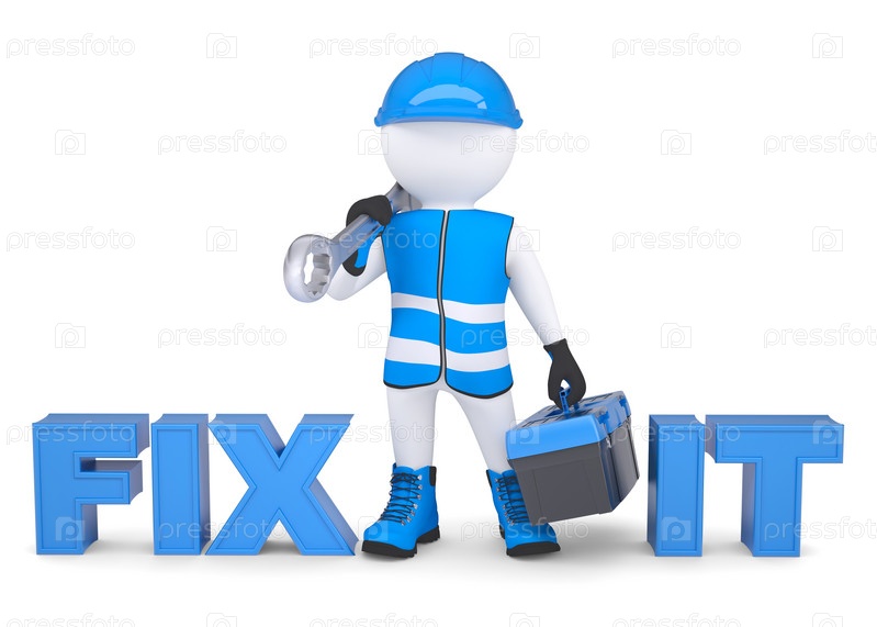 3D-человек с ключом и инструментами