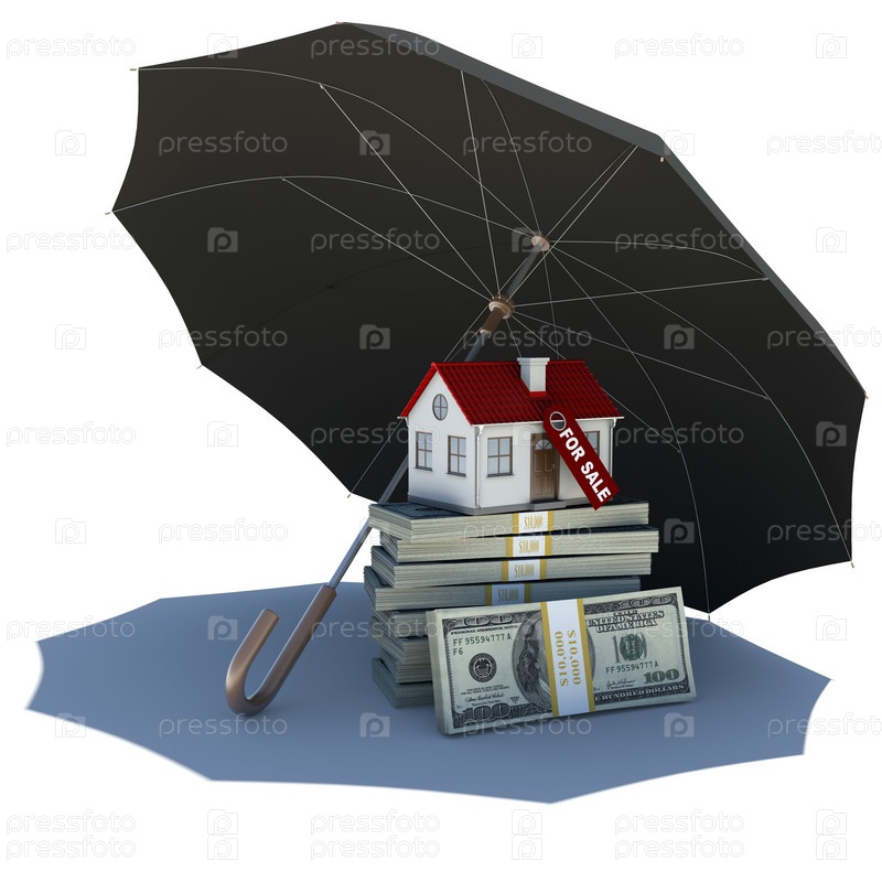 Зонт закрывает домик и деньги