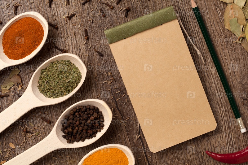 Старый блокнот, специи в ложке