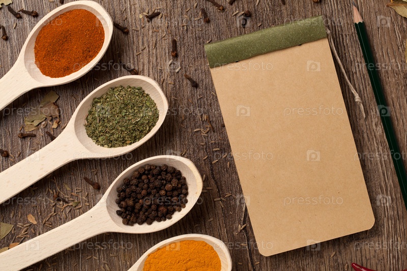 Старый блокнот, специи в ложке