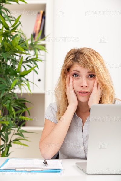 Удивленная женщина с ноутбуком