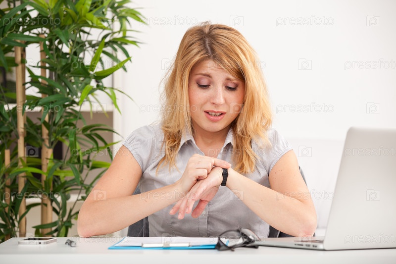 Женщина смотрит на наручные часы