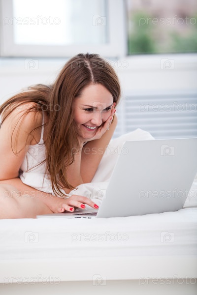 Женщина в постели с ноутбуком