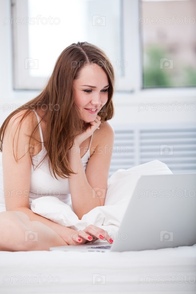 Женщина в постели с ноутбуком