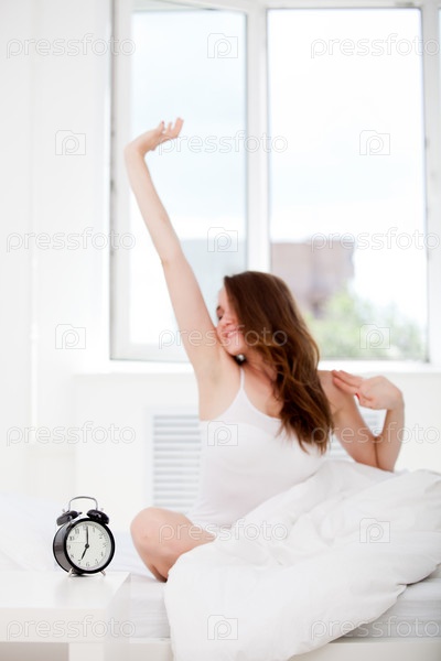 Женщина просыпается и потягивается