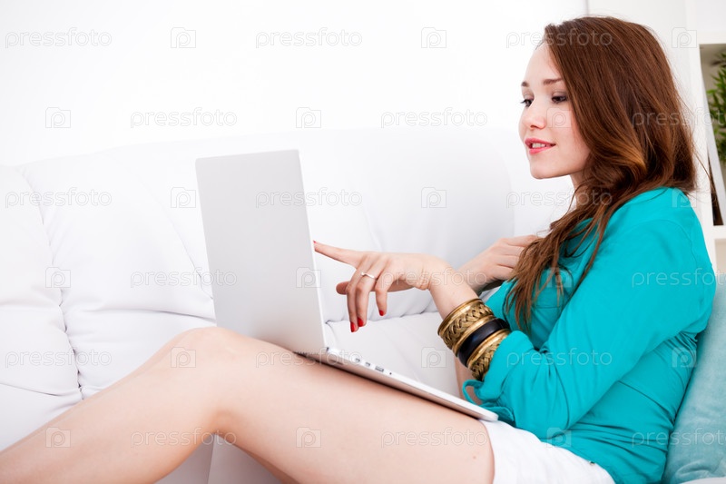 Женщина сидит за ноутбуком