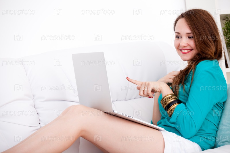 Женщина сидит за ноутбуком