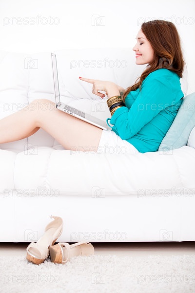 Женщина сидит за ноутбуком