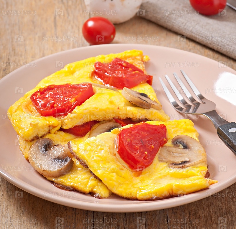 Вкусный омлет с помидорами и грибами на завтрак