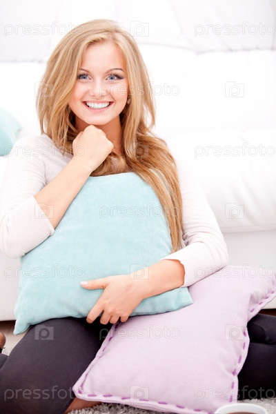 Женщина обнимает подушку