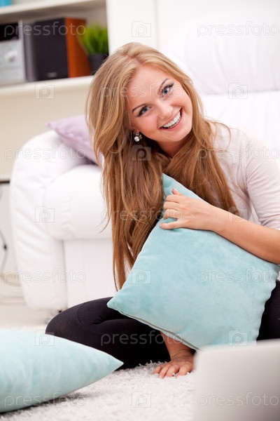Женщина держит подушку