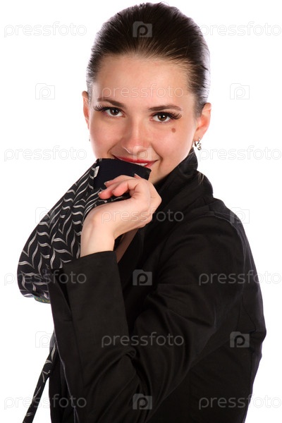 Портрет девушки с галстуком на белом фоне