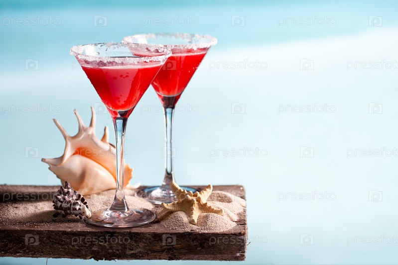 Красный напиток на пляже