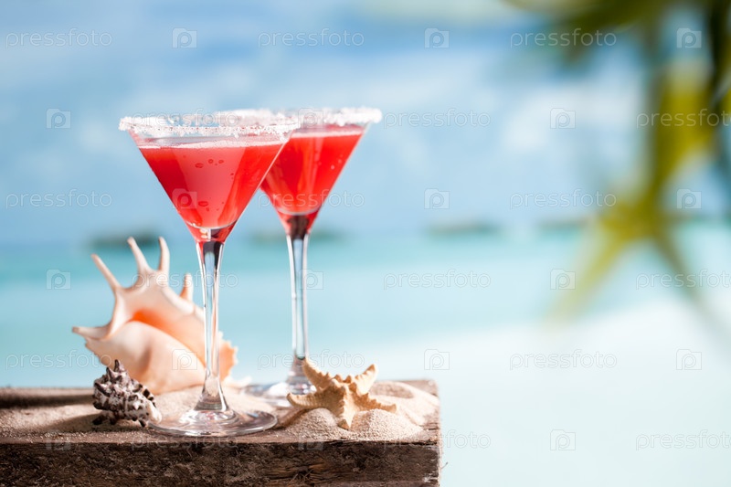 Красный напиток на пляже