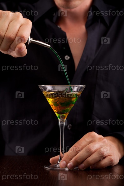 Бармен наливает напиток