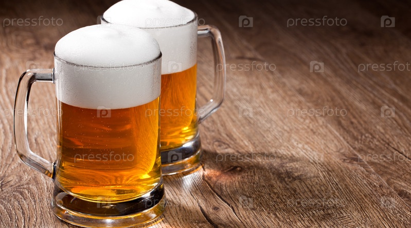 Два стакана пива на деревянном столе
