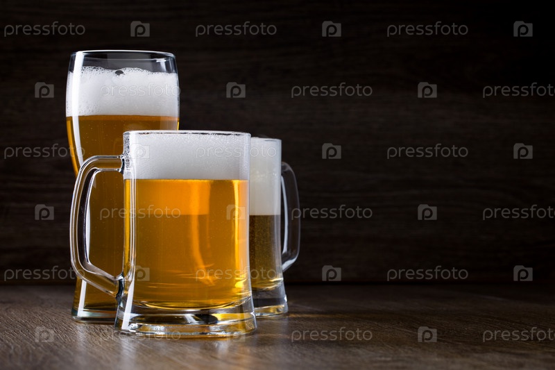 Два стакана пива на деревянном столе