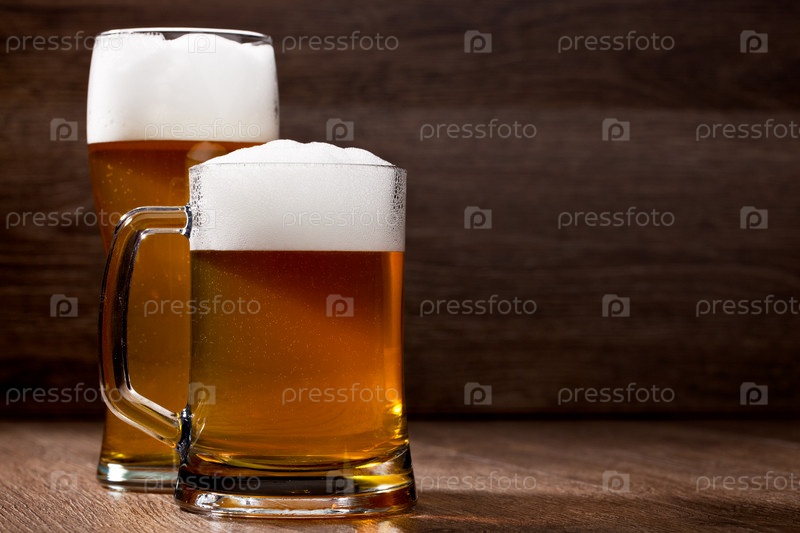 Два стакана пива на деревянном столе