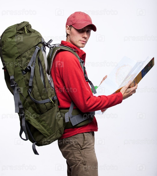Турист, изолированный на белом фоне