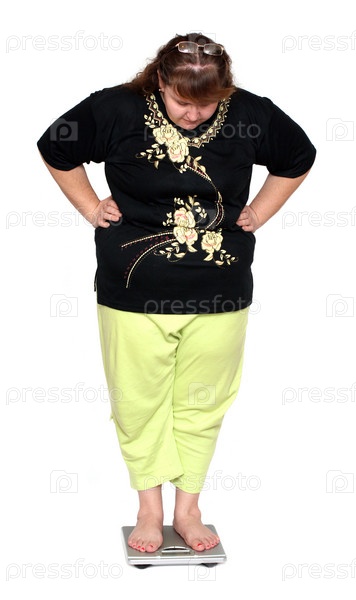 Женщина с избыточным весом стоит на весах