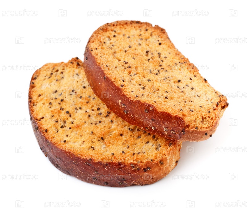 Два сухарика с маком на белом фоне