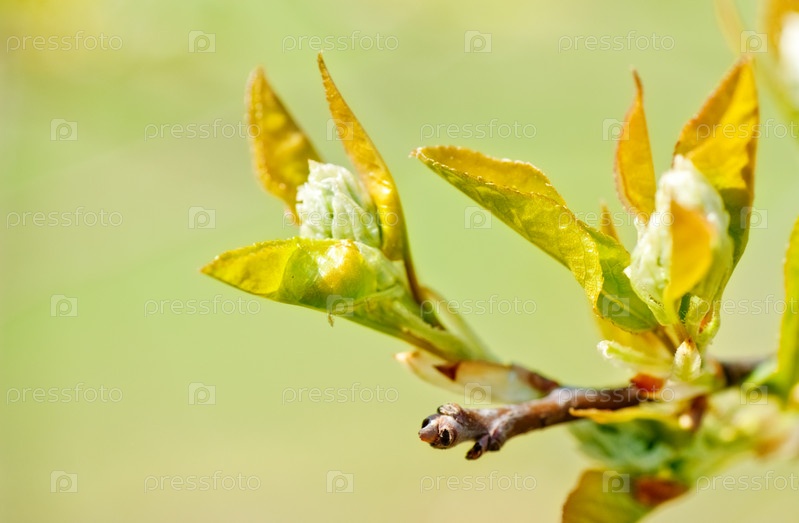 Весенние зеленые листочки на ветке