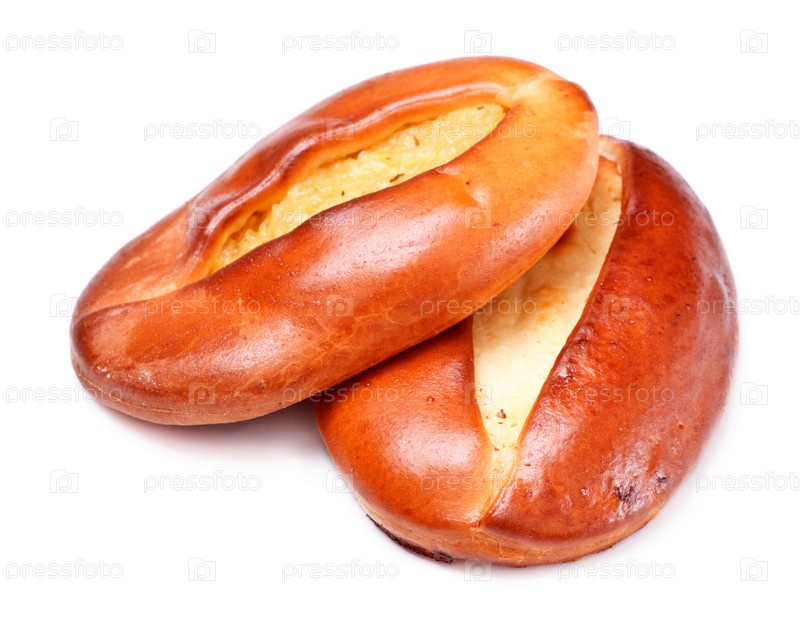 Два пирога с творожной начинкой на белом фоне