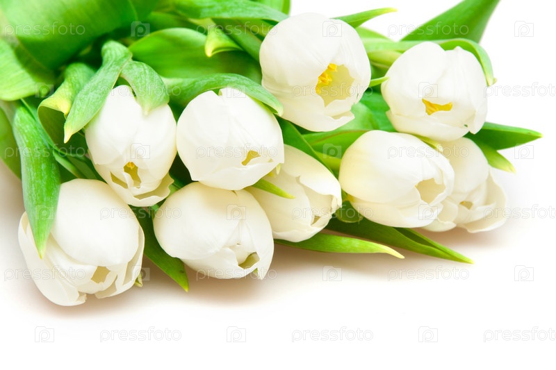 Букет белых тюльпанов на светлом фоне