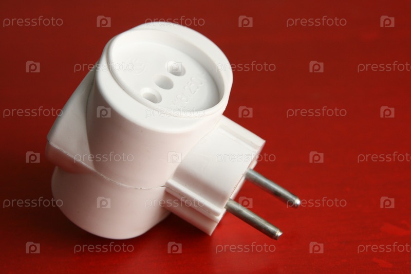 Электрический тройник на красном фоне