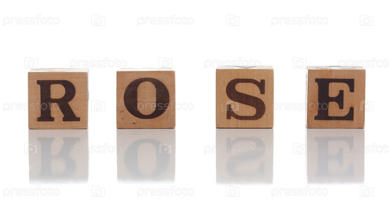 Деревянные кубики со словом 'Rose', изолированные на белом фоне
