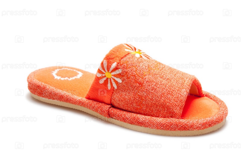 Оранжевая тапка на белом фоне
