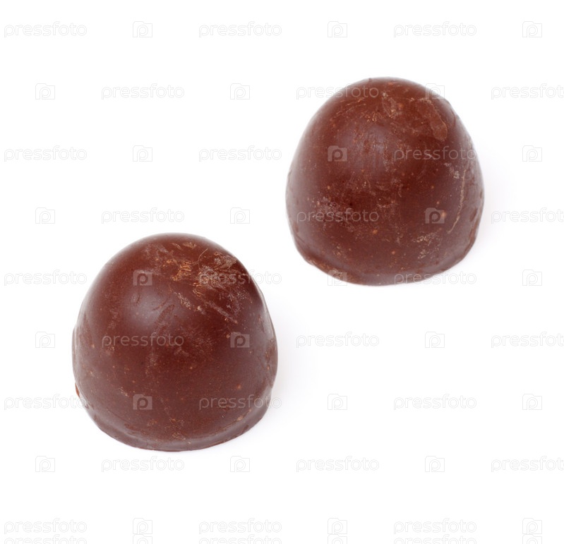 Две шоколадные конфеты на белом фоне