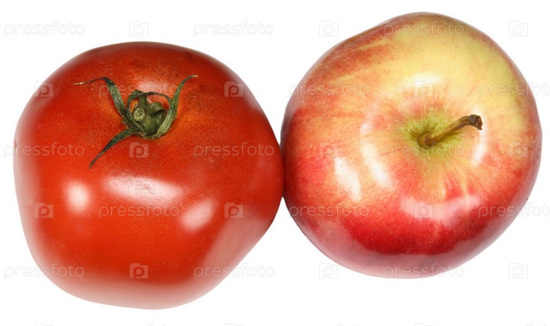 Яблоко и помидор на белом фоне