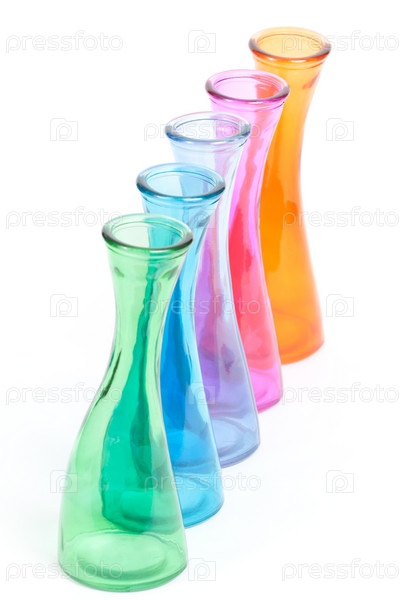Стеклянные разноцветные вазы, изолированные на белом фоне
